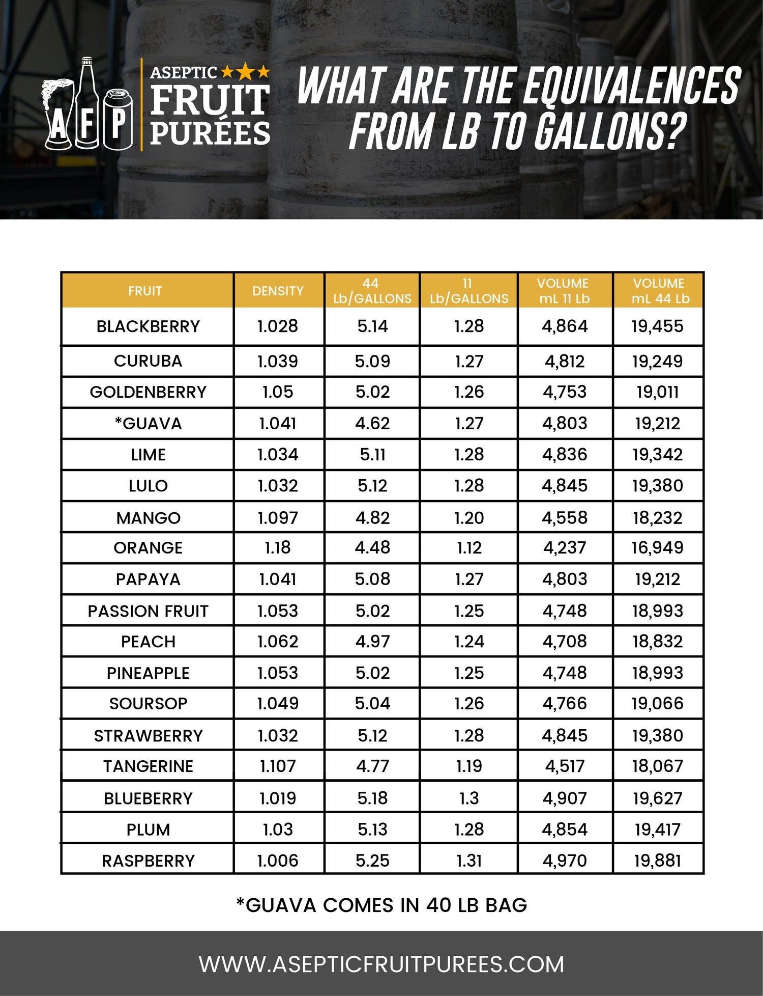 - Mild fruits such as banana, papaya, or pear need 2.5-3.0 lb per gallon, to achieve a more defined flavor profile.